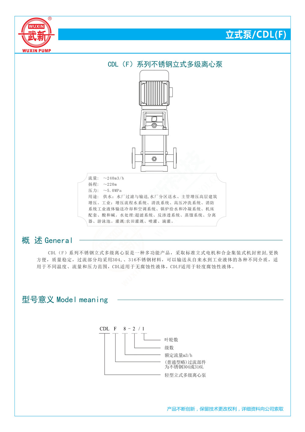 CDL(F)不銹鋼立式多級離心泵